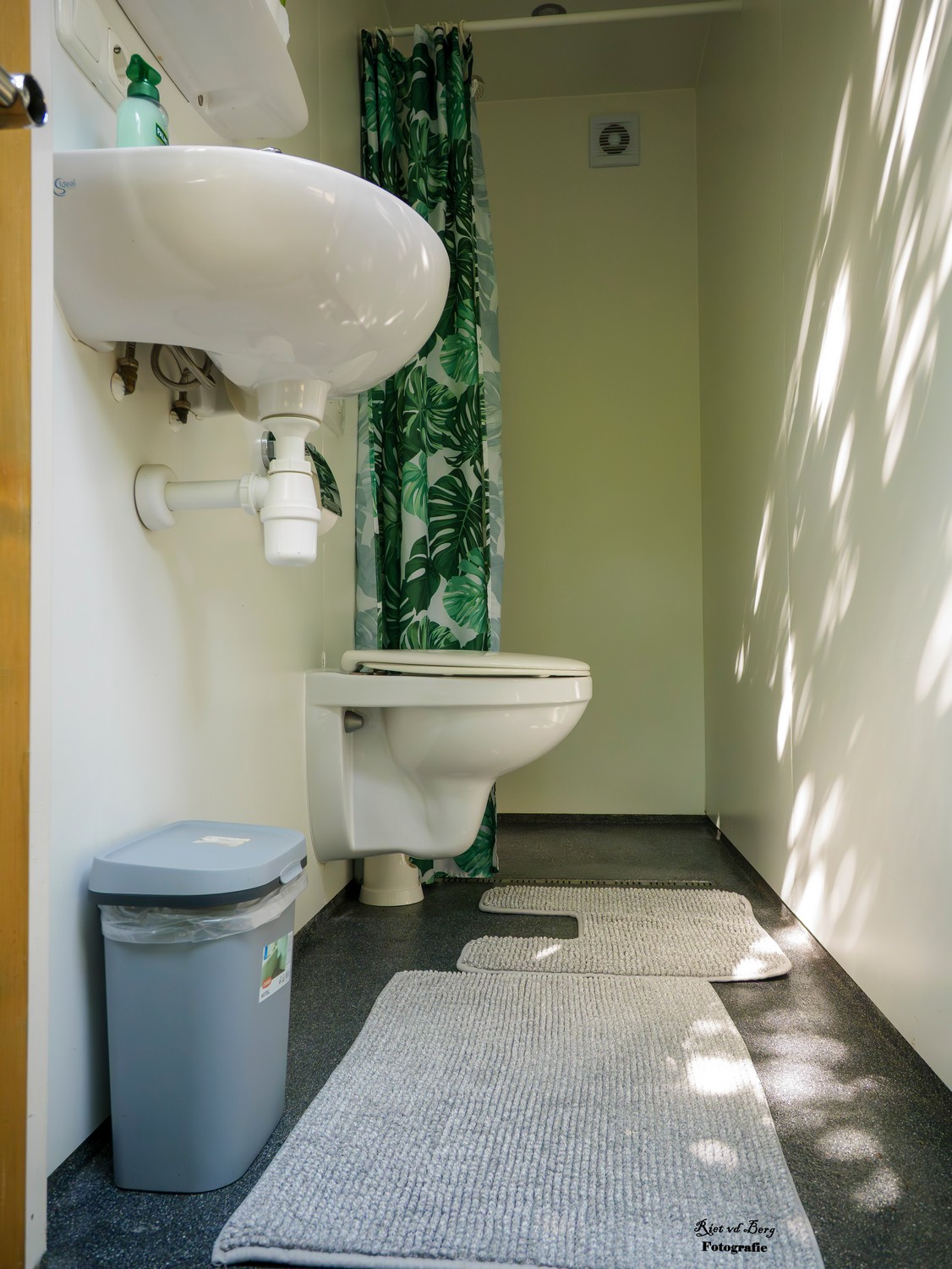 - Private Sanitärkabine mit Waschbecken, Dusche und Toilette